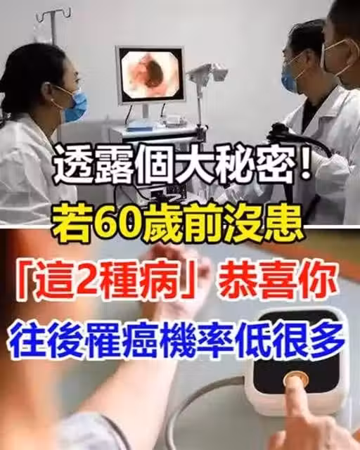 醫生透露個大秘密!若60歲前沒患「這2種病」恭喜你:往後罹癌機率低很多!!!