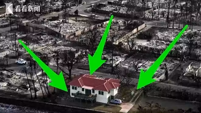 在滿目灰燼和瓦礫中,一幢紅頂的木房子卻「毫髮無傷」地保留下來,令很多人感到驚訝。