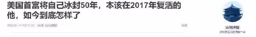 法制播報 ——2022-04-11《美國首富將自己冰封50年,本該在2017年復活的他,如今到底怎樣了》