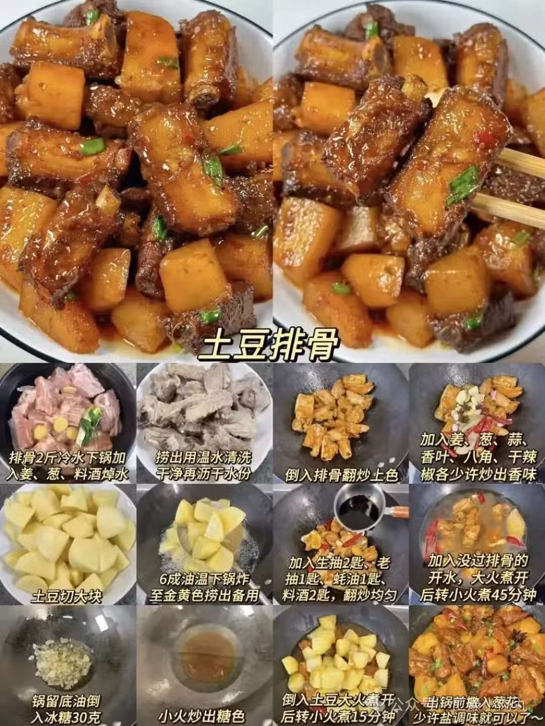 每逢過年,年糕排骨總是家裡的寵兒。排骨精挑細選,肉質鮮嫩多汁。入鍋煎至表面金黃,每一塊都散發著誘人光澤。另一邊,軟糯的年糕也迫不及待下鍋。年糕吸飽了排骨的湯汁精華,變得油潤亮澤。咬上一口,先是軟糯Q彈的口感,緊接著濃郁的肉香在舌尖綻放。排骨的醇厚與年糕的軟糯相得益彰,甜咸交織的滋味,是記憶中家的味道。