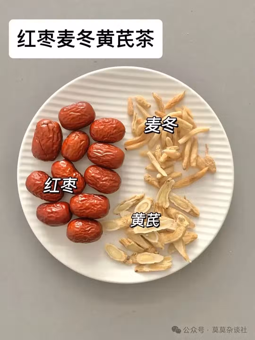 功效: 黃芪是補氣的好手,麥冬滋陰潤燥,紅棗補血健脾,三者搭配,特別適合熬夜多、總感覺疲憊的小夥伴。