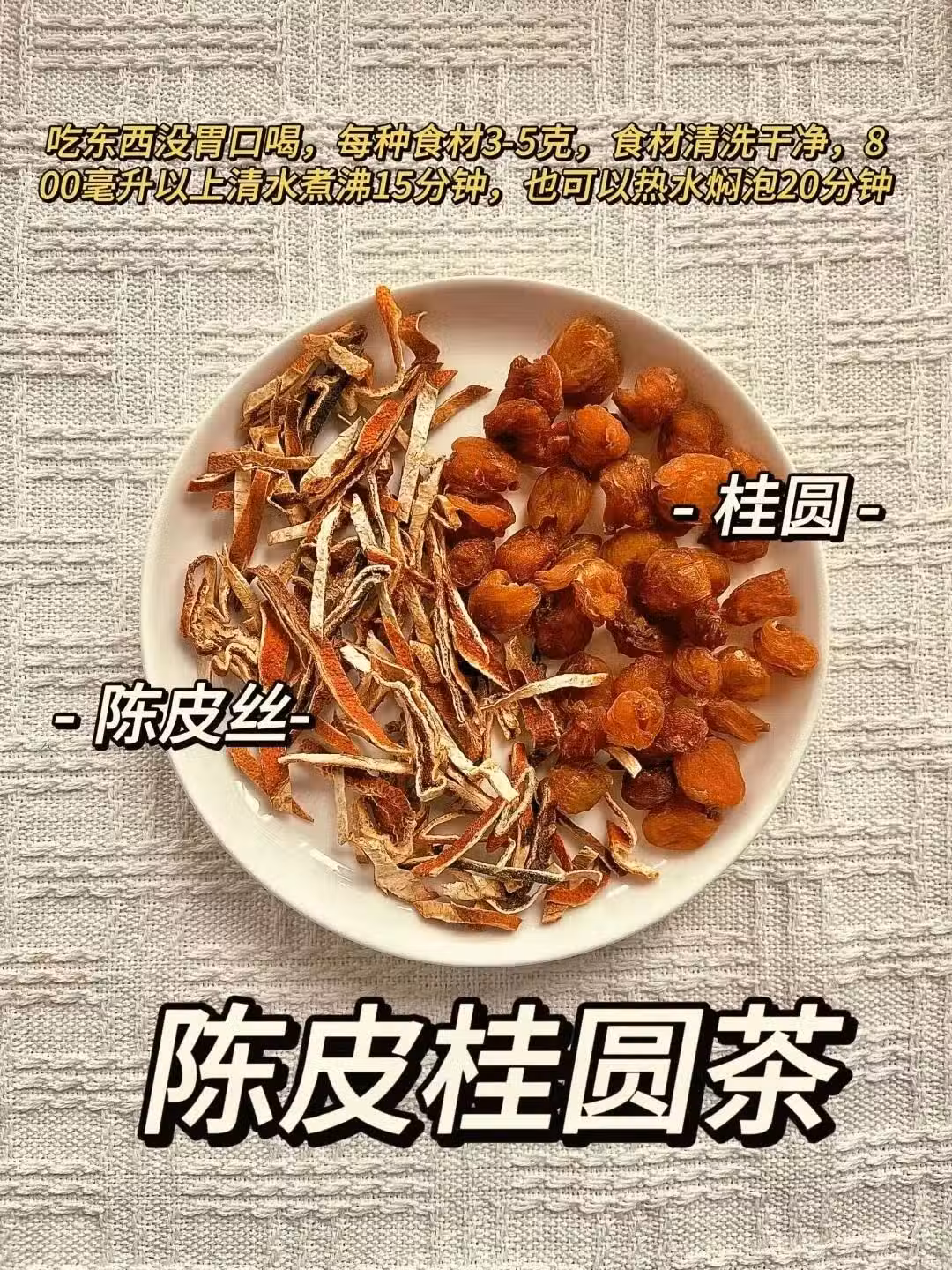 陳皮理氣健脾,促進食慾;桂圓益氣養血,甘甜滋補。
