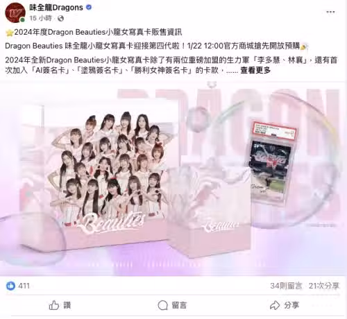 ▲味全龍推出小龍女限量寫真卡,1盒要價19800元。(圖/味全龍官方臉書)