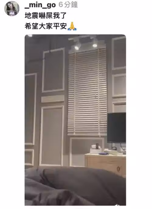 ▲朴旻曙在社群網站上表達碰到地震的恐慌心情,網友認為她的應對方式已經盡得台灣人的真傳。(圖/摘自Threads)