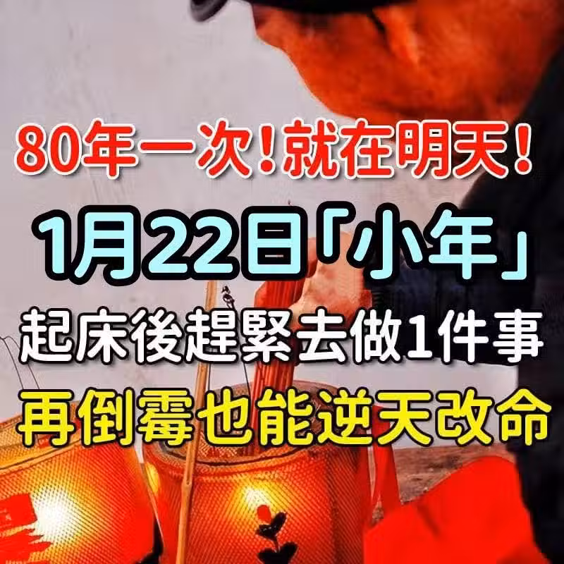 80年一次!就在明天!1月22日「小年」不一般,起床後趕緊去做1件事,再倒霉也能逆天改命,從此有錢、有權、有貴人