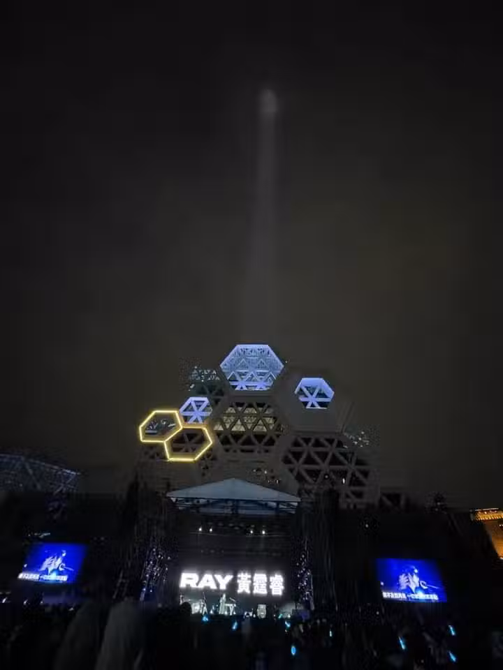 不過,很快就有在地網友出面解釋,表示這道光芒其實是高雄流行音樂中心的活動探照燈。