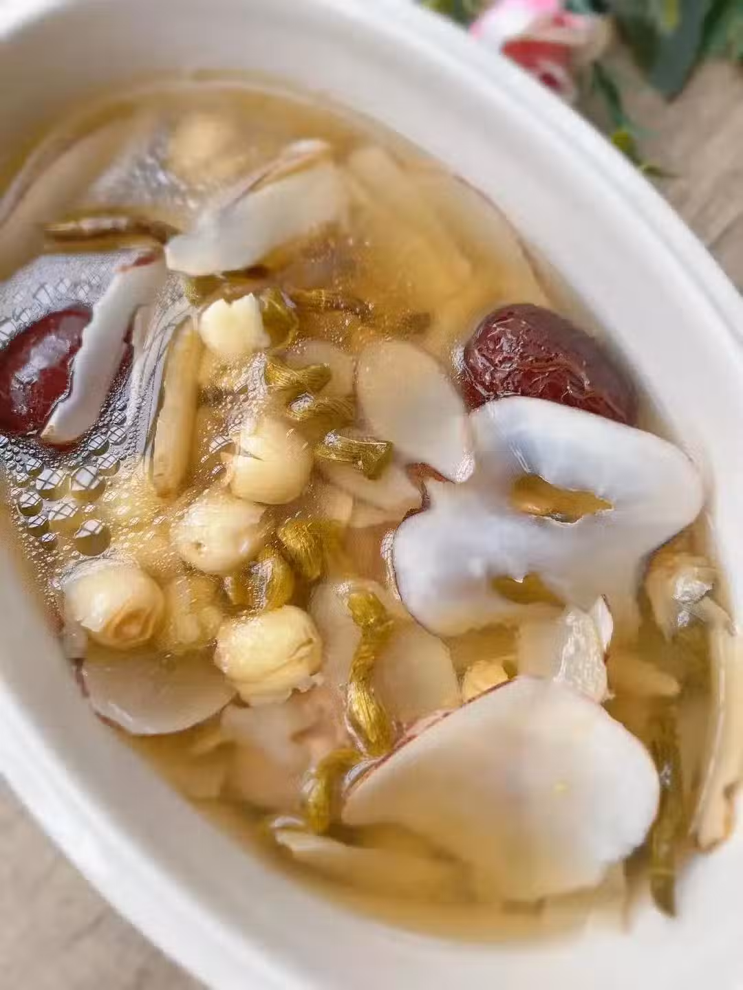 這些材料也可以用來煲湯,做法和甜湯類似,不過在煲湯時可以加入肉類(如瘦肉、排骨等)來增添鮮味。先將肉類焯水去腥,然後和其他材料一起燉煮即可,燉煮時間可以適當延長。