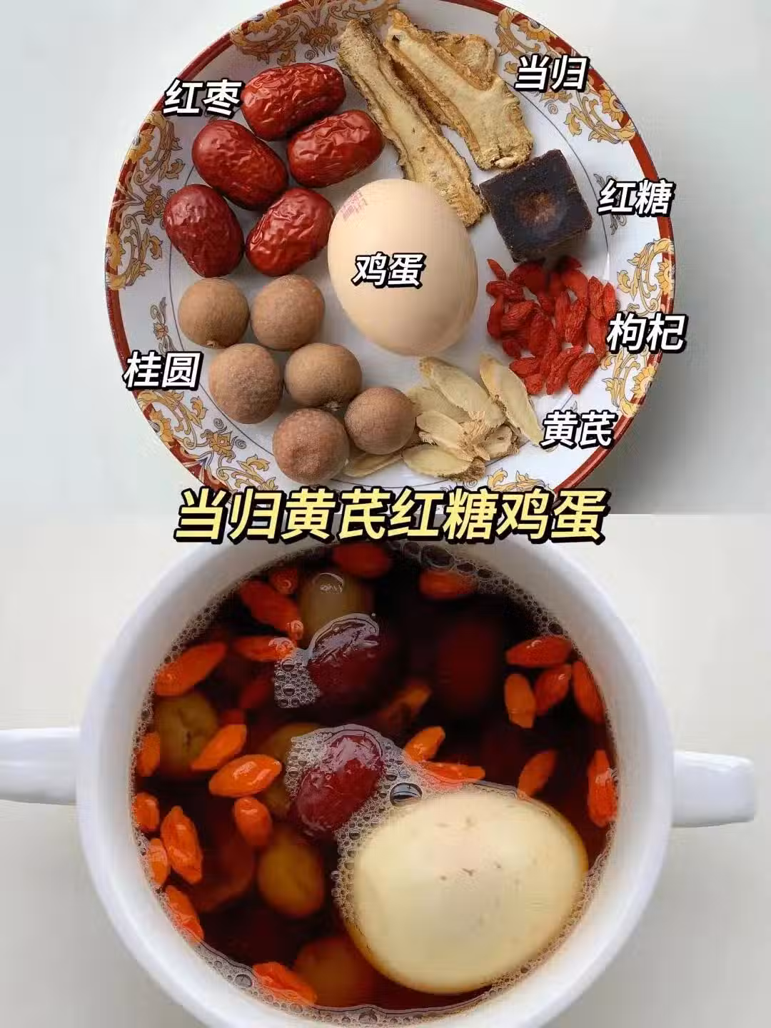 黃芪、當歸、桂圓、紅棗、枸杞、紅糖