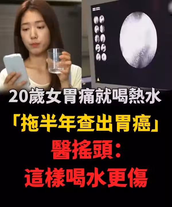 中國一位20多歲的女病患小賈常常胃痛,習慣以喝熱水的方式緩解不舒服,未料半年後就醫照胃鏡,才發現自己罹患胃癌了。