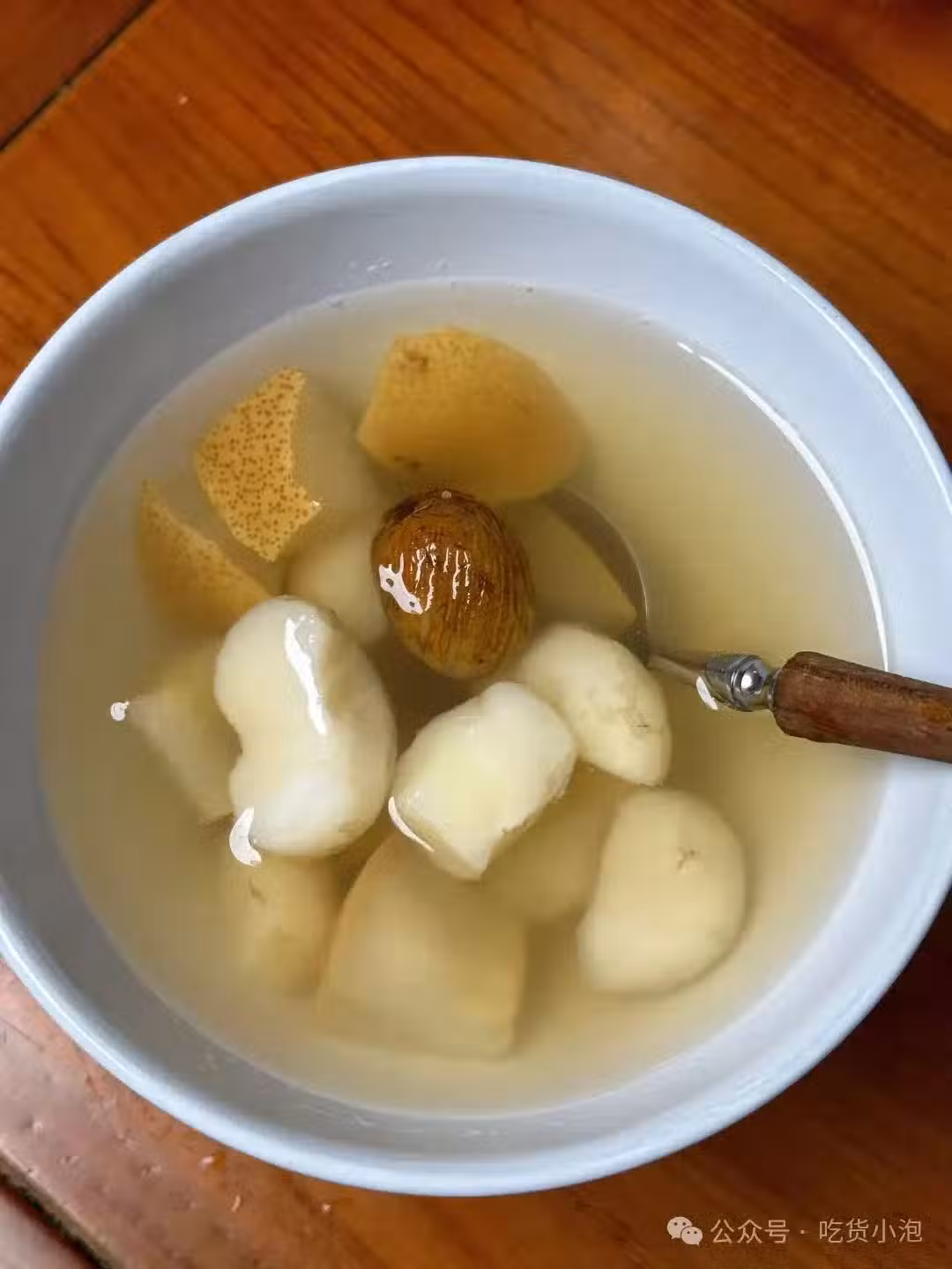 梨 100g、藕 100g、荸薺 100g、干蘆根 15g、干麥冬 15g、蜜棗一顆。