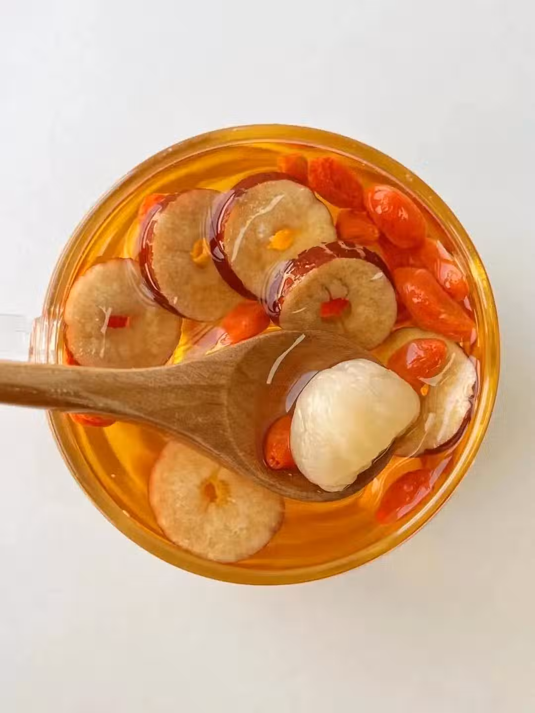食材:桂圓5g、麥冬5、黃芪5g、紅棗5克、枸杞(隨意)