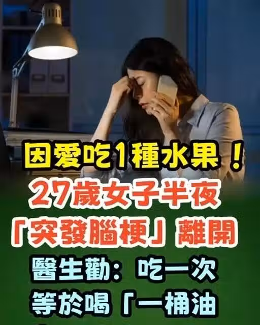 因愛吃1種水果 !27歲女子半夜「突發腦梗」離開了, 醫生勸:吃一次等於喝「 一桶油!」