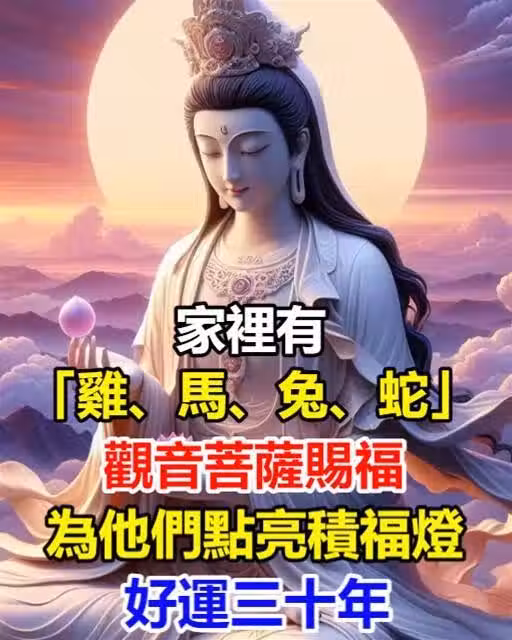 家裡有屬「雞、馬、兔、蛇」的人!今日觀音菩薩賜福,為他們點亮積福燈,好運三十年!!