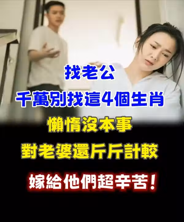 嫁給他們超辛苦!找老公「千萬別找這4個生肖」 懶惰沒本事「對老婆還斤斤計較」