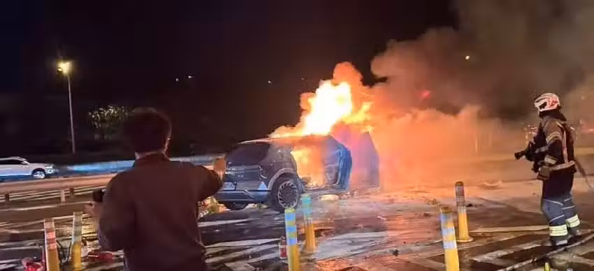 據目擊者描述,車上乘客被安全帶卡住、電動車門第一時間無法打開,增加救援難度。