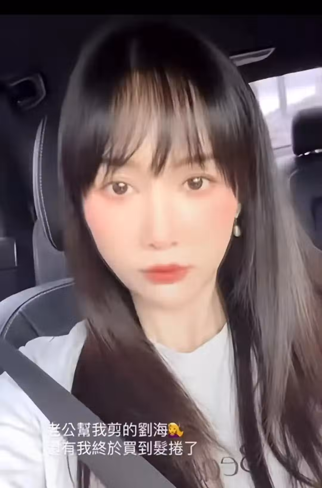 陳喬恩對自己的這個新劉海髮型非常滿意,還自曝是老公艾倫幫忙剪的。