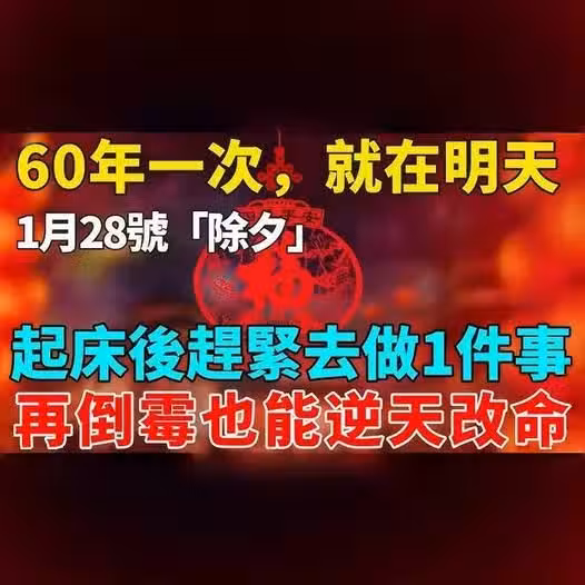 60年一次,就在明天!1月28號「除夕」,起床後趕緊去做1件事,再倒霉也能逆天改命!