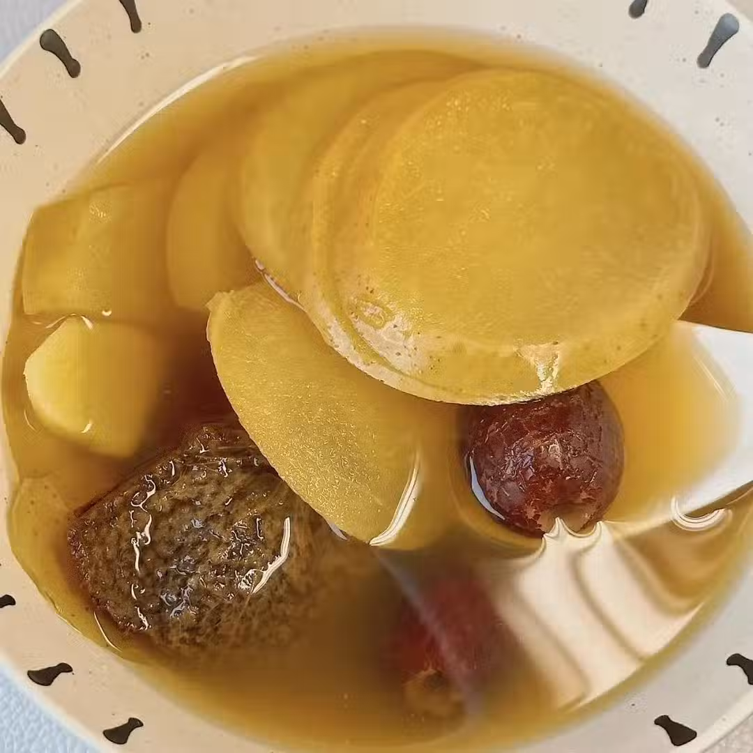 陳皮1片,雪梨皮1片,白蘿蔔皮1片,冰糖適量。
