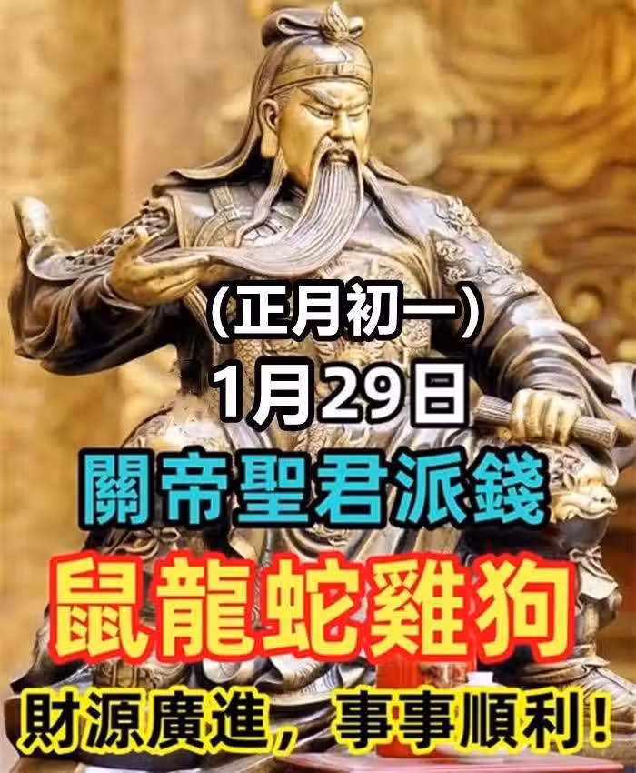 1月29日(正月初一)關帝聖君派錢,這些生肖如果你在榜里,快接財!