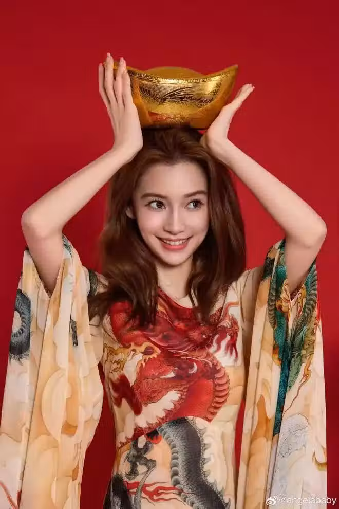她也將金元寶放置在了自己的頭頂上,瞬間化身成為了女版的財神爺。Angelababy也秀出了自己那雙白皙纖細的手腕,還有修長的十指,而指甲上也塗抹著粉色的指甲油,彰顯了自己的少女心了。