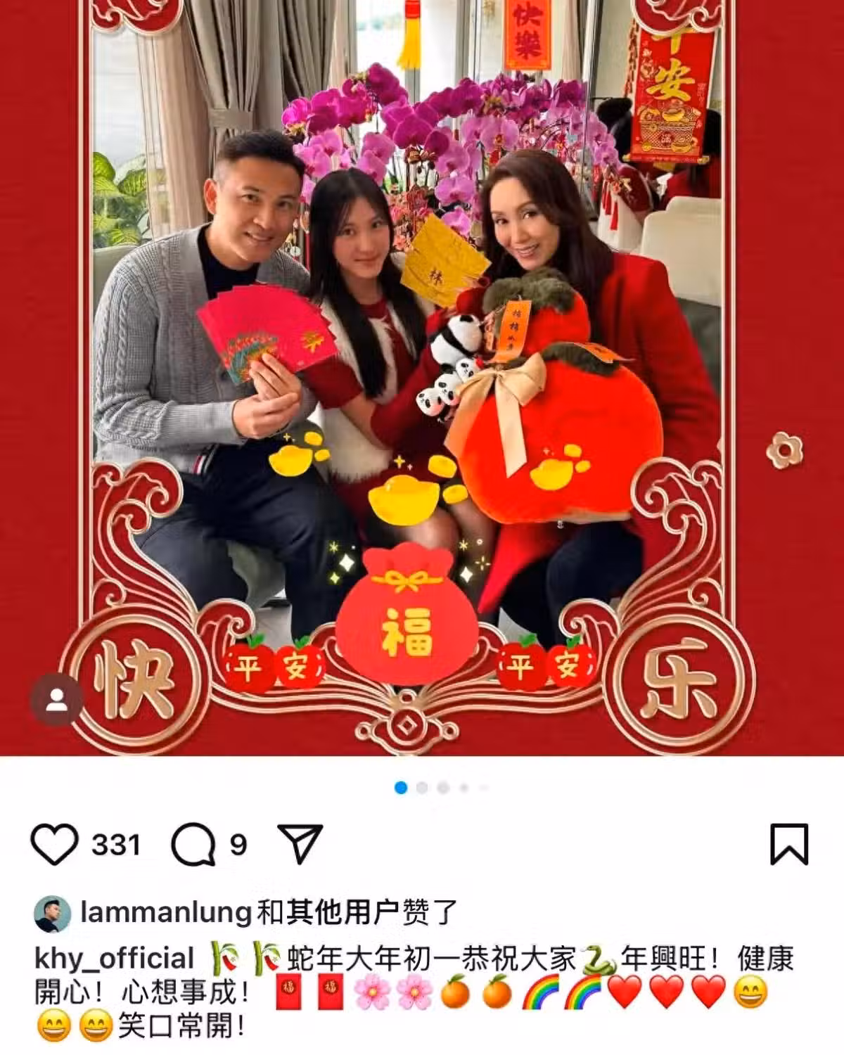 1月29日大年初一,郭可盈在社交平台曬出全家福給大家拜年。並配文「蛇年大年初一恭祝大家蛇年興旺!健康開心!心想事成!」