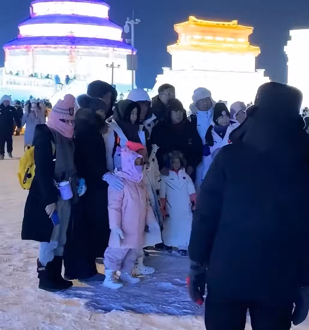 去年12月底,就有不少網友偶遇霍啟剛一家,包括霍震霆也在場,他和孩子都穿著印有國旗的羽絨服,在人山人海的景區中十分搶鏡。