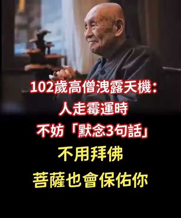 102歲高僧泄露天機:人走霉運時不妨「默念3句話」 不用拜佛「菩薩也會保佑你」……
