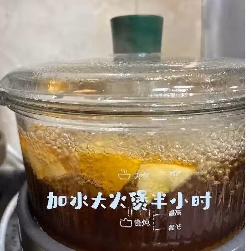 將陳皮、羅漢果和蘋果一同放入鍋中,加入適量清水(約800毫升至1000毫升);開大火煮沸後,轉小火煮15-20分鐘。