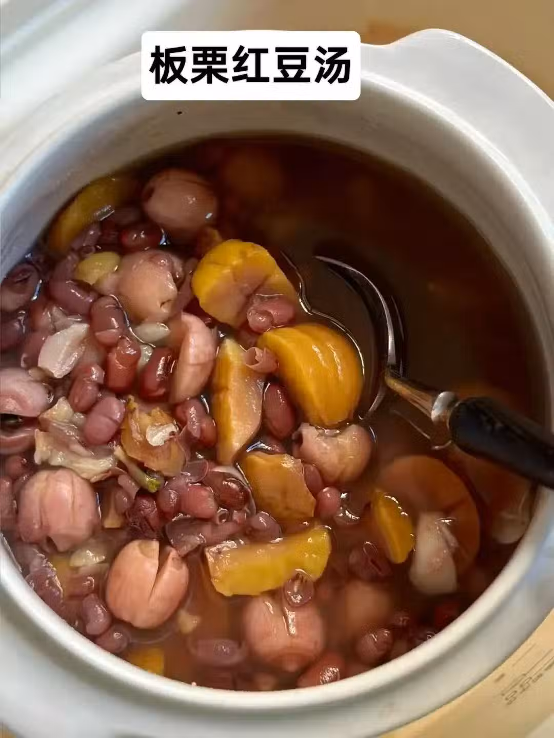 板栗8顆、紅豆20、陳皮一瓣、蓮子15g、百合10g、黃冰糖適量
