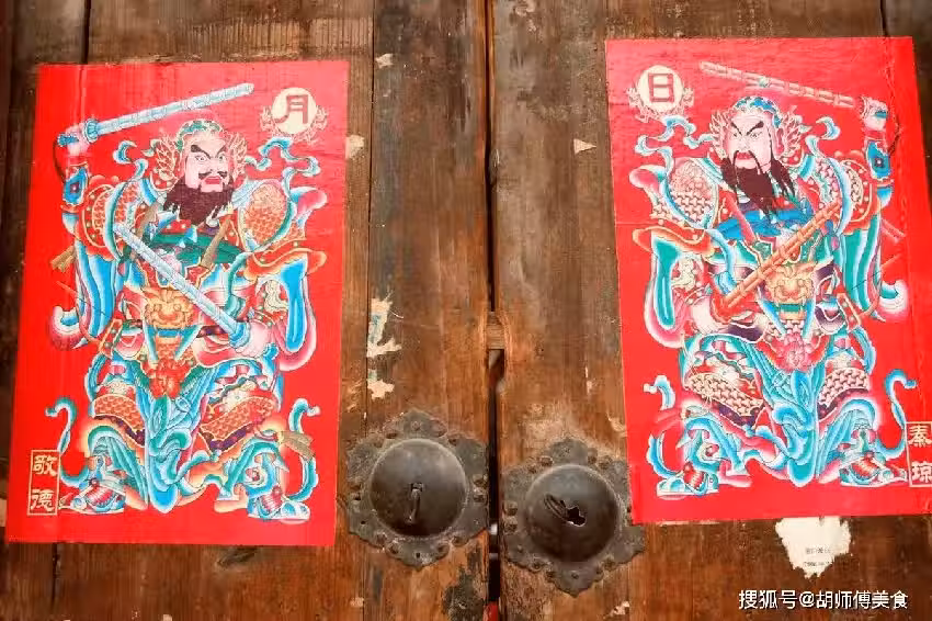 門神是守護家裡一種神靈,人們在除夕前把它貼於門上,用來驅邪避鬼,來保佑全家人一整年的安康。