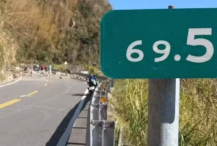 ▲嘉義今日10時許發生地震,阿里山公路出現落石,一度雙向中斷,緊急搶通中。