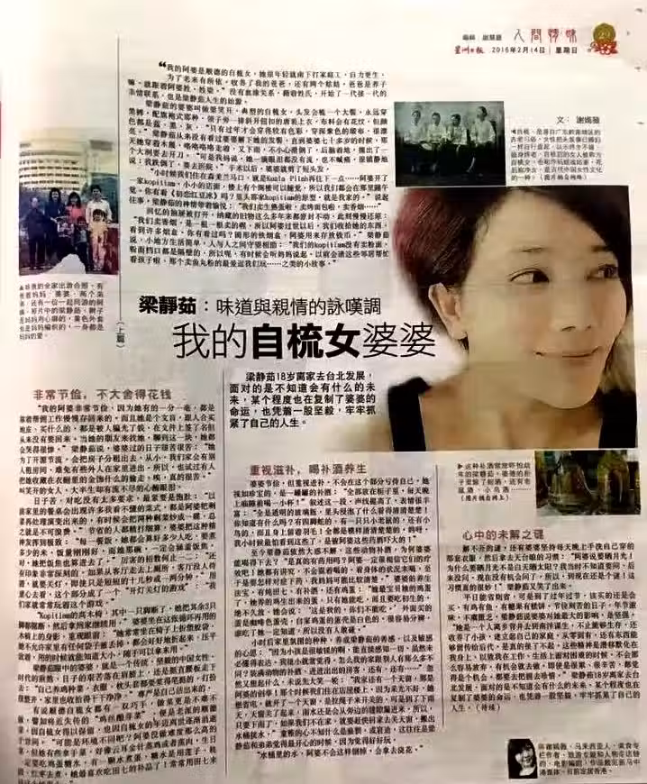 梁靜茹奶奶是廣東自梳女,到大馬打工被騙光身家靠節儉獨力養三娃