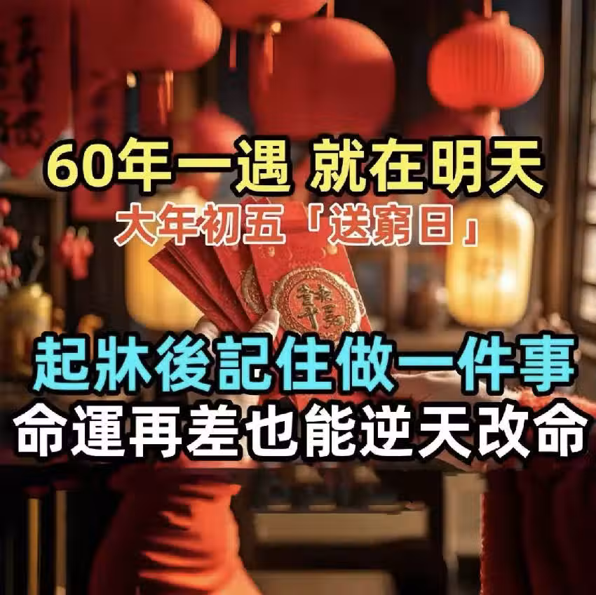 60年一遇,就在明天!大年初五「送窮日」,起床後記住做一件事,命運再差也能逆天改命