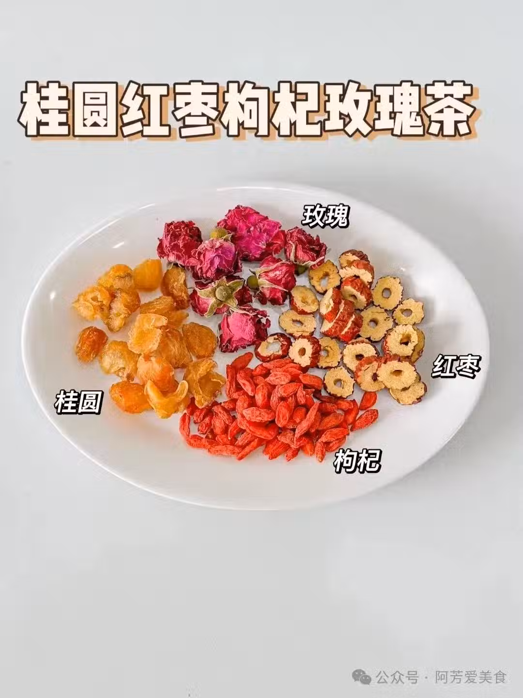 桂圓搭配紅棗枸杞,還有玫瑰花 ,準備的口感是非常的完美,紅棗和枸杞是偏甜的,在搭配一些玫瑰花的花香喝上不僅讓人感覺在花海里還感覺在香田野里。喝了一杯,還想繼續喝。