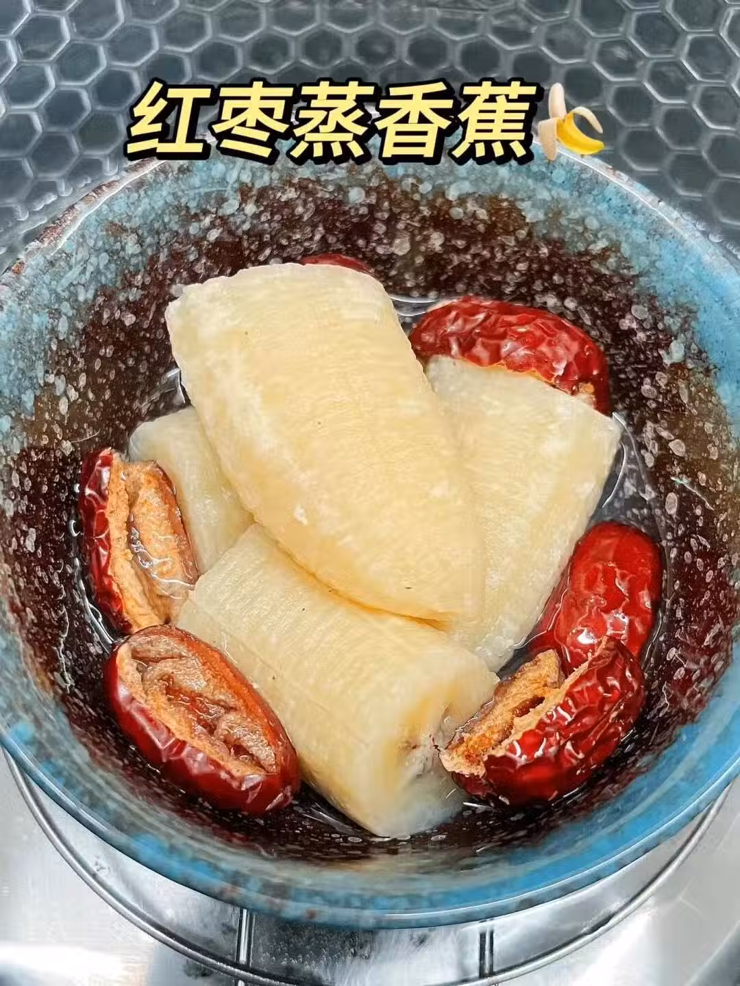 香蕉切段大小適中更易熟透,蒸熟的紅棗軟糯香甜,更適合腸胃虛弱的人。