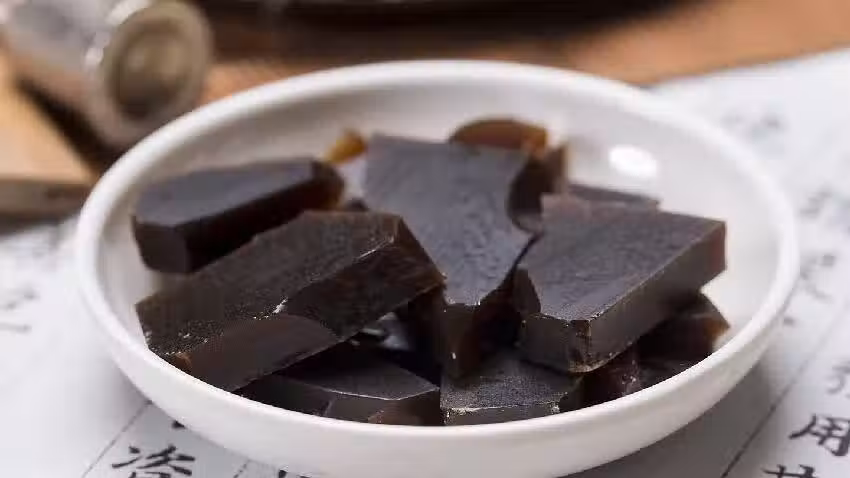 在補血期間不妨適當吃阿膠,阿膠是名貴的食材,具有藥用價值,可以滋陰潤燥、止血、補血。