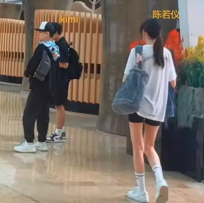 雖然這張合影中沒有看見陳若儀,但在其他網友的偶遇照中,可見陳若儀也是輕裝上陣,本人又高又瘦雙腿十分纖細,宛如少女。