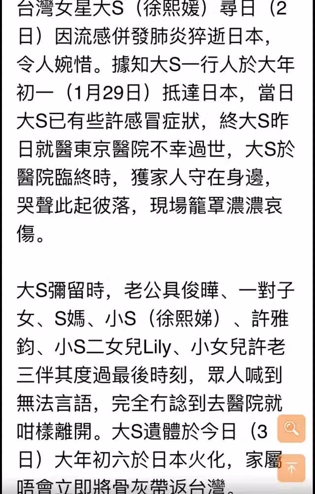 大S臨終前全家相伴左右,哭聲此起彼伏氛圍哀傷,具俊曄悲痛回應