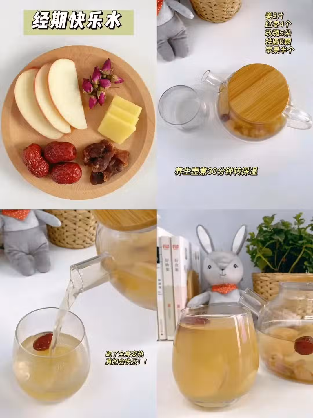 玫瑰花香與紅棗香完全融入在蘋果的清新之中,一杯下肚不僅暖宮驅寒,健脾暖胃,還能舒緩情緒,全身都熱了,來姨媽的煩悶感也瞬間被治癒了!
