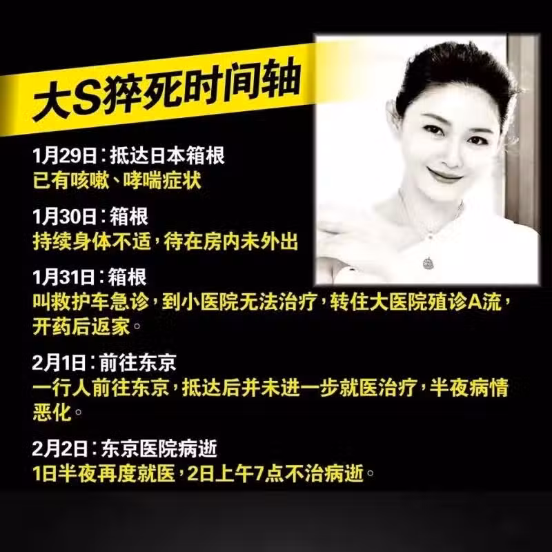 日本染A流過世!大S「發病到猝逝僅4天」完整時間軸曝光 導遊嘆「錯失2次生還機會」:原本不會死...…大好年華,今人嘆惋