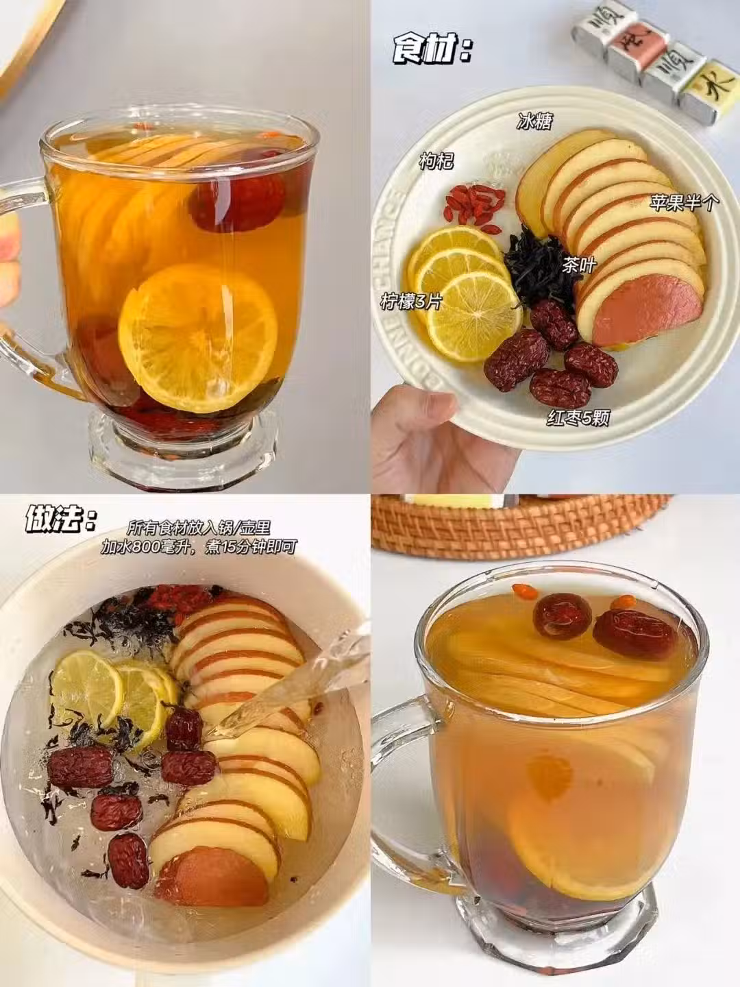 ②蘋果黃芪陳皮水:作為一個講究的養生人,我每周都會堅持煮這個蘋果黃芪陳皮水來喝,因為蘋果富含膳食纖維和維生素,搭配上補氣養血的黃芪和紅棗,理氣健脾的陳皮,滋養潤燥的百合,這些食材搭配一起煮水,不僅味道清甜好喝,而且可以補氣補血,健脾祛濕,美容養顏,很適合經常熬夜導致小臉蠟黃暗沉,脾胃虛弱,消化不良,精神疲憊的人多喝~