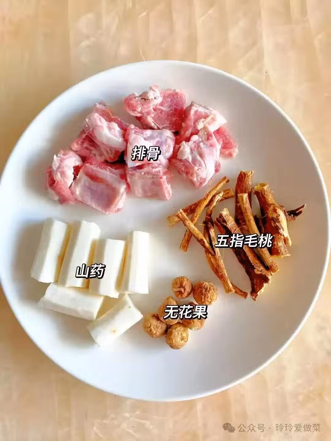 排骨具有滋陰壯陽、益精補血的功效,對於身體出現熱病傷津、消渴贏瘦、腎虛體弱、產後血虛、燥咳、便秘等症狀,具有補虛、滋陰、潤燥、滋肝腎、潤肌膚、利二便和止消渴的作用。 五指毛桃有助於改善脾胃功能,促進消化吸收,適用於脾虛引起的食欲不振、消化不良等症狀,五指毛桃可以入藥膳,做成各種湯品,如五指毛桃海底椰竹蓀雞、豬骨五指毛桃湯等。這些湯品不僅美味,還能發揮五指毛桃的功效。 山藥含有澱粉酶、多酚氧化酶等物質,這些成分有助於促進脾胃的消化吸收功能,因此山藥被認為是一味平補脾胃的藥食兩用之品。無論是脾陽虧還是胃陰虛,山藥都能夠起到改善作用,常用於治療脾胃虛弱的病症。