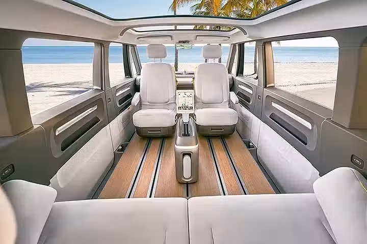 由於沒有傳統引擎,並將電池組擺放在車底板,因此 ID.Buzz 擁有很寬大的車內空間,以及多元的座椅變化機能。