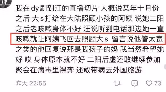 這一點的細節從汪小菲之前直播的行為就可以看出來。當時大S感染病毒,便打電話給身在大陸照顧小孩的保姆,汪小菲聽聞後,立刻讓保姆前往照顧。
