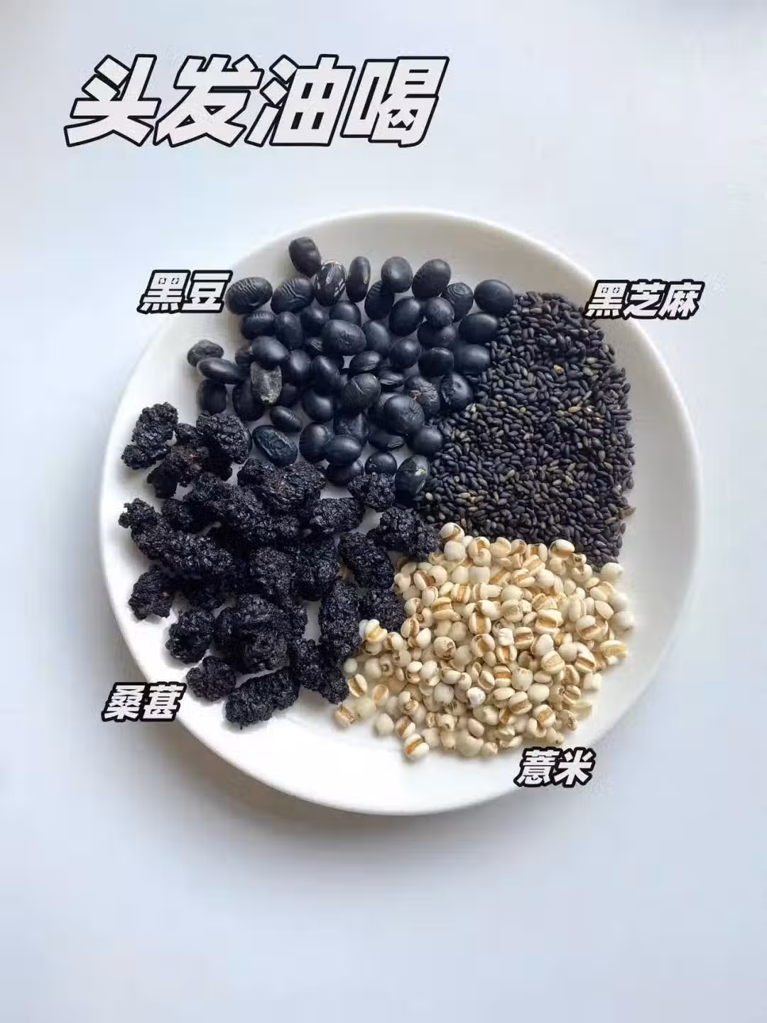 ☑️食材:黑豆+黑芝麻+桑葚+銀耳+南杏仁