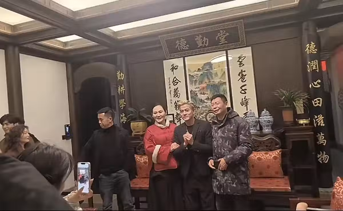 郭富城以前經常穿內增高,因此看著個子不是那麼矮,本次回安徽老家,他完全放下明星架子,穿了一雙白色的平底運動鞋,顯得好矮。