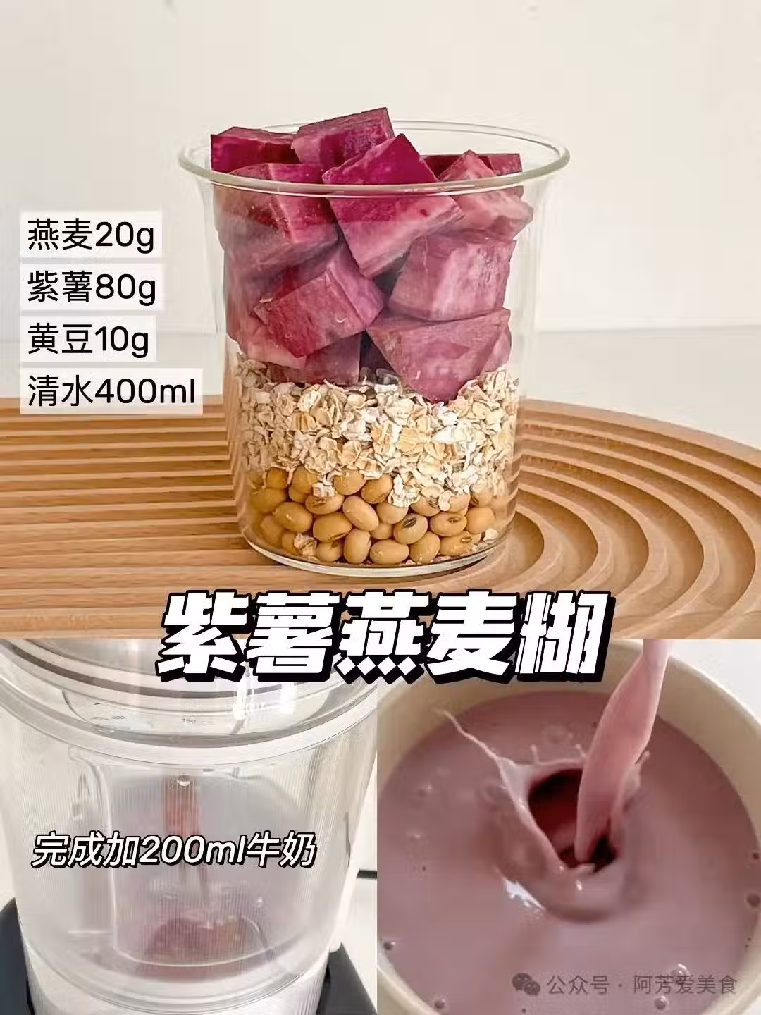 紫薯燕麥糊紫薯的軟糯搭配燕麥,非常的好喝!滿滿的粗糧,很健康的噢。