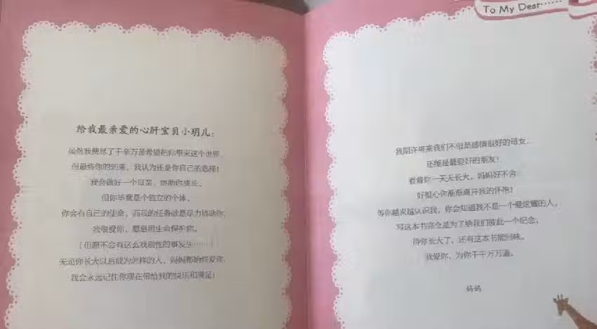 「我不是一個愛炫耀的人」,寫下這些單純是為了留下與女兒之間的回憶,「期待你長大了,還有這本書能回味,我愛你,為你千千萬萬遍」。