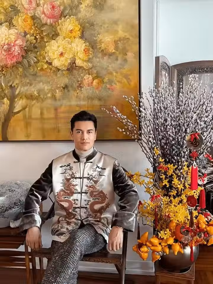 從視頻中可以看到,呂良偉與楊小娟的逾千呎豪宅,充滿了中式風味。楊小娟身著棗紅色上衣搭配桃紅色中式長背心和灰色長褲,坐在大廳中賞花,呂良偉則穿上珍珠色的華服坐在中式木椅上打卡,身邊放有一盆銀柳和五代同堂,而呂良偉身後的白牆掛了一幅巨型牡丹名畫,旁邊的玄關位更放置設有雕花屏風。