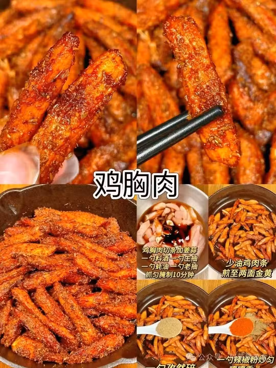 雞胸肉腌制好味道後,放入空氣炸鍋中會非常的好吃雞肉充滿了味道,還非常的酥脆多汁,也是飯桌上必不可少的一道美味 。